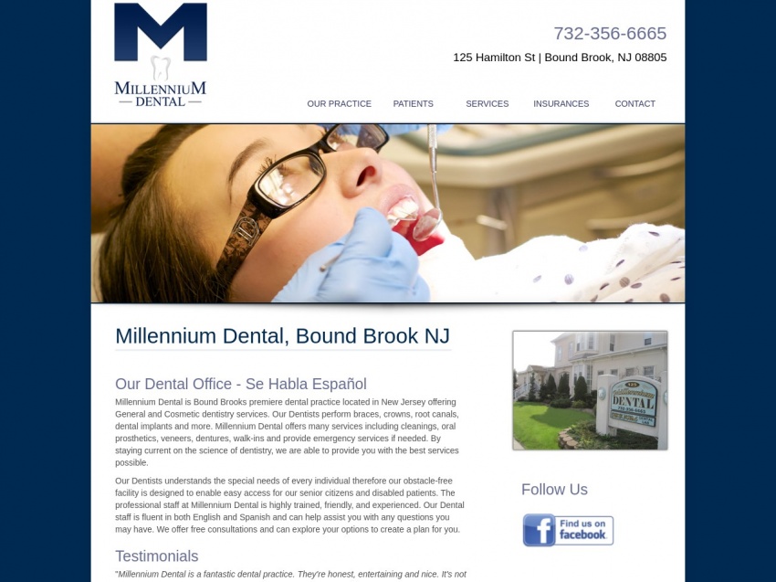 ProfileCosmetic Dentistry | Dentist Bound Brook NJ | Somerville NJ Dentist | Dr. Marmolejos Photos www.millenniumdentalnj.com_ Map Loading... No Records Found Sorry, no records were found. Please adjust your search criteria and try again. Maps failed to load Sorry, unable to load the Maps API. Enter your locationGet Directions Travel modeDrivingWalkingBicyclingPublic Transport Distance unitsMilesKilometers Previous Next
